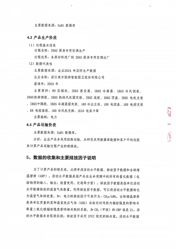 2024年度iK6S厨房专用空调产品碳足迹报告